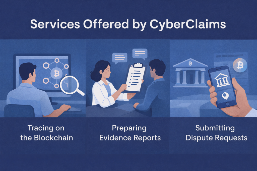 At CyberClaims, we pride ourselves on transparency and professionalism in assisting victims of cryptocurrency fraud. Our team uses proven methods to track and recover stolen assets without compromising your security or privacy. Unlike fraudulent companies, we prioritize your protection and ensure every step is taken with integrity.